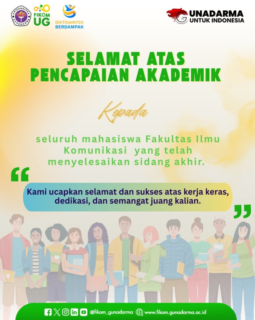 Terima kasih atas dukungan dan doa dari seluruh civitas akademika. Bersama-sama kita wujudkan FIKOM UG sebagai pusat keunggulan dalam ilmu komunikasi.